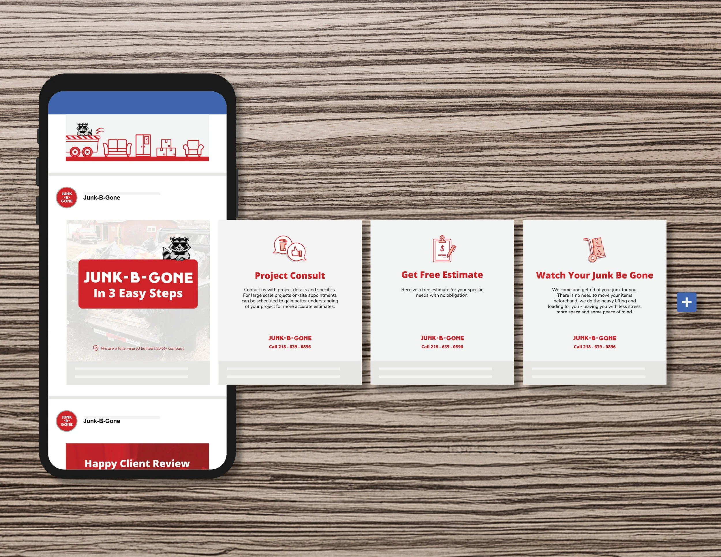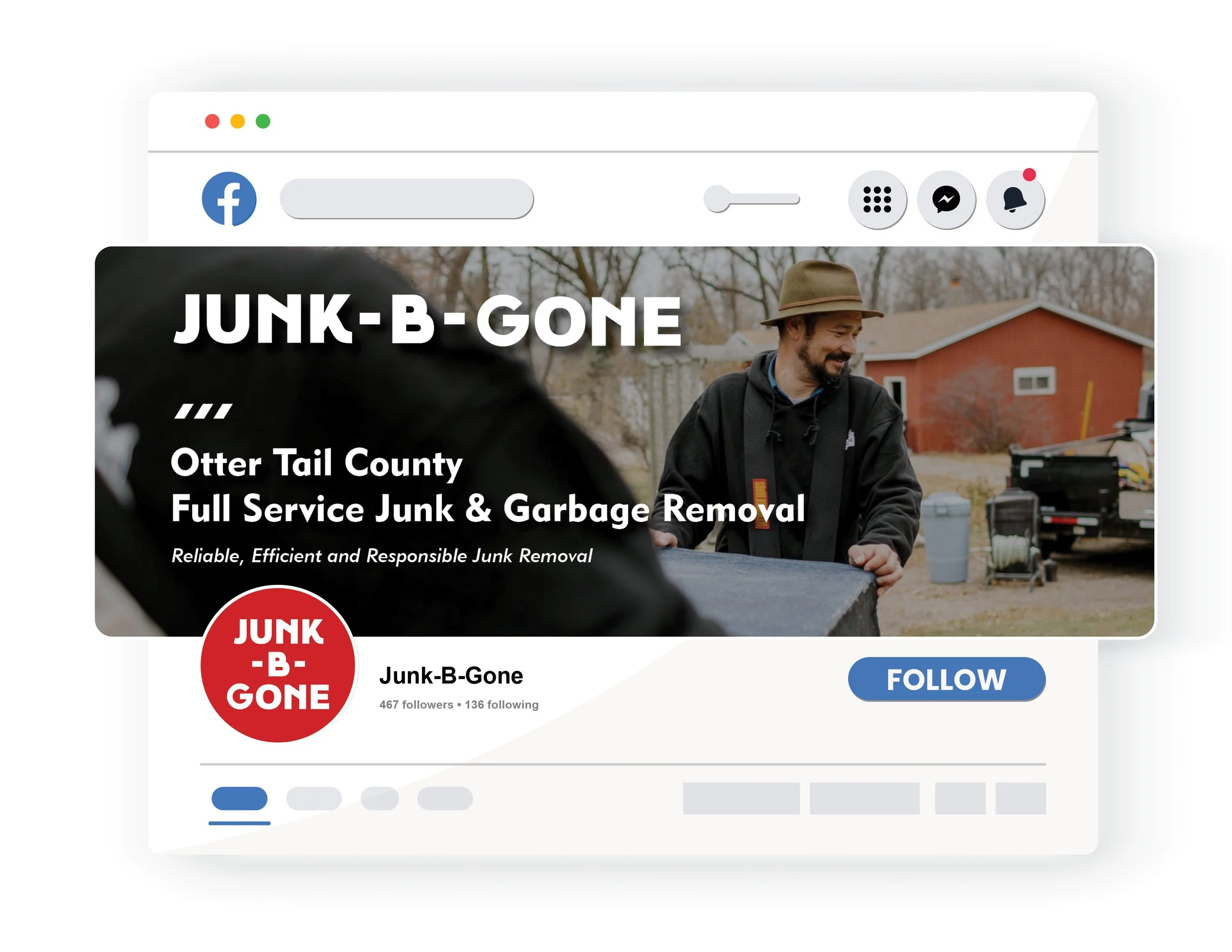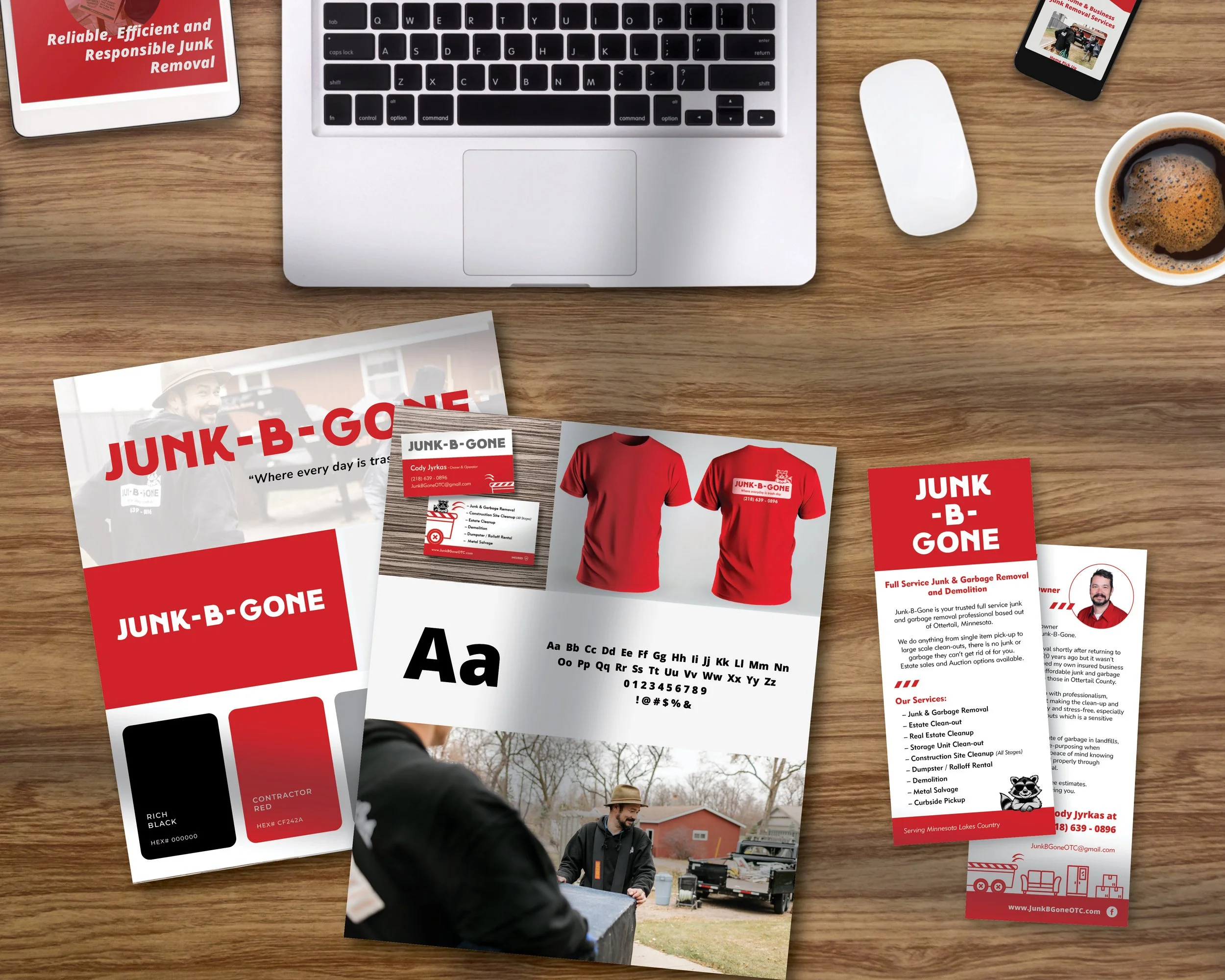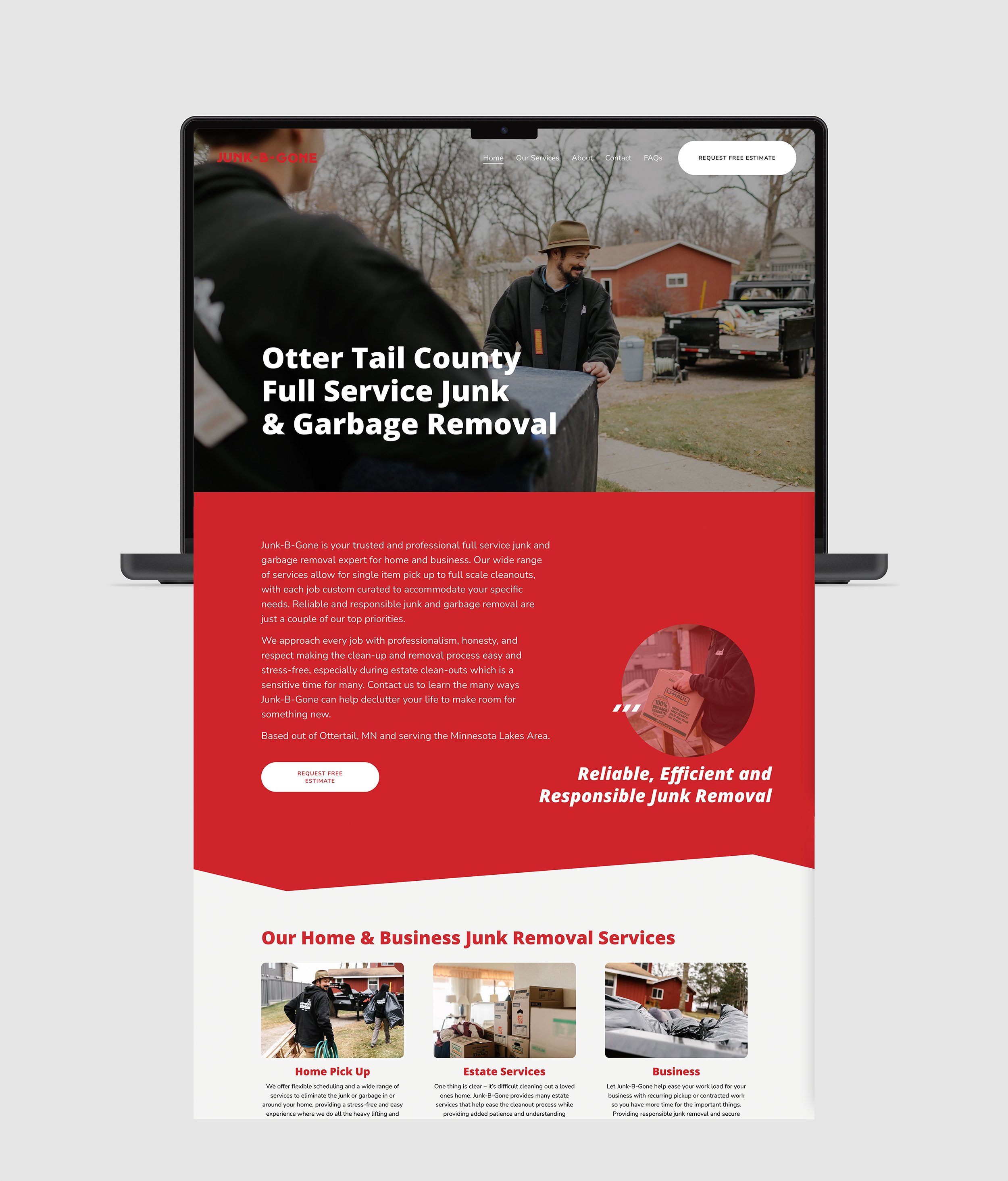 Junk-B-Gone is your full service junk and garbage removal experts based out of Ottertail, Minnesota. When they started out their brand consisted of a logo and business cards. As the business grew we started to build out their brand identity by modifying its existing logo and creating supporting visuals for both print and web design to help with credibility and the marketing process.
